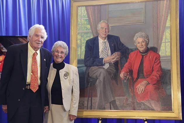 Dr. and Mrs. Lindberg pose next to their official portrait during the unveiling ceremonies at the National Library of Medicine.…